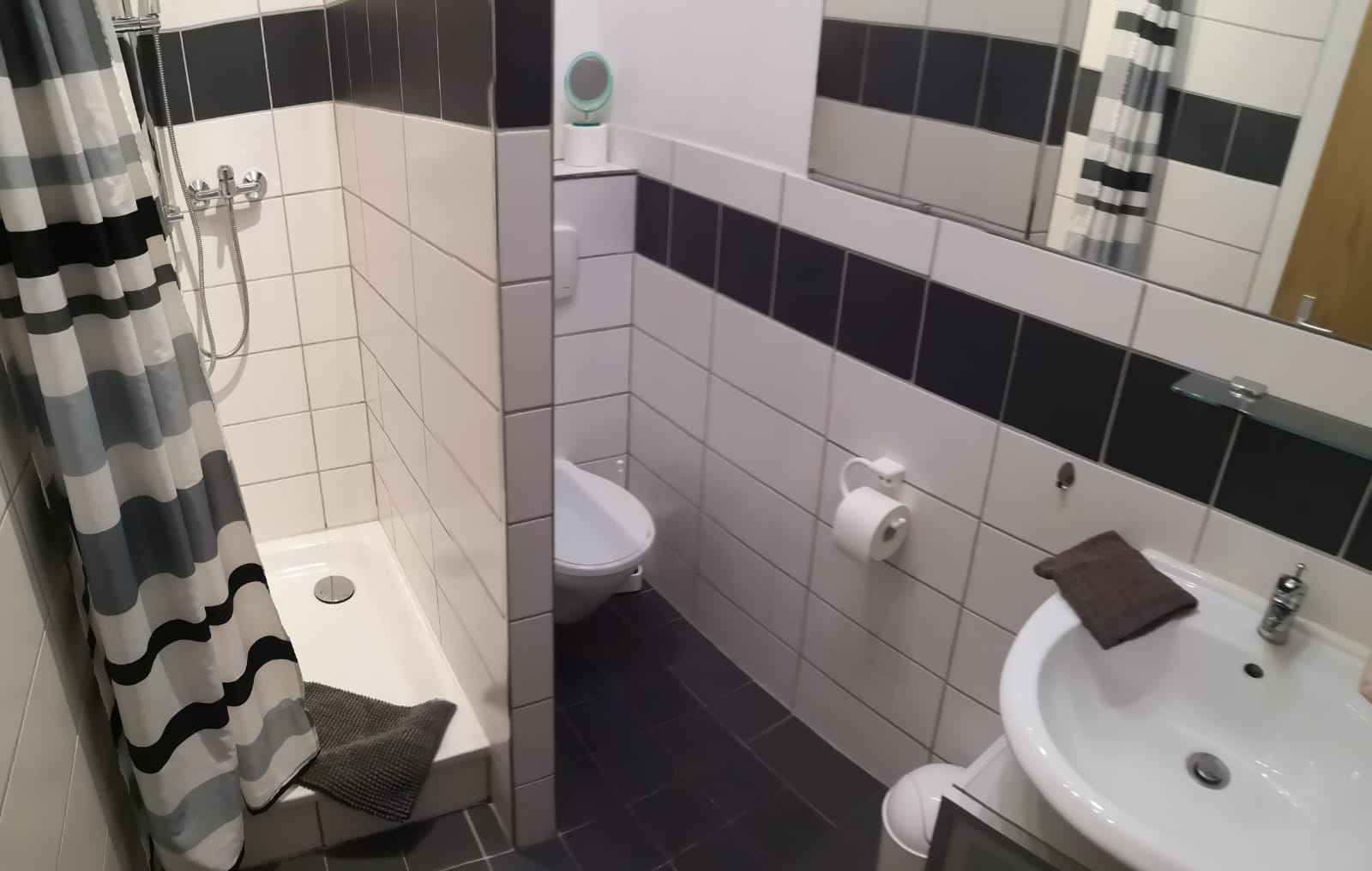 Die Ferienwohnung Benky II besteht aus einem Studio, einem kleinen Schlafzimmer zum Hinterhof und einem Duschbad. Das Studio beinhaltet ein Doppelbett (1,60), eine Schlafcouch, einen Essbereich und eine Küchenzeile. Fernseher, Mikrowelle, Induktionskochfeld und Kühlschrank sind vorhanden. Im kleinen Schlafzimmer steht ein Doppelbett (1,40) bereit. Bequem finden in dieser Wohnung 4 Personen Platz.