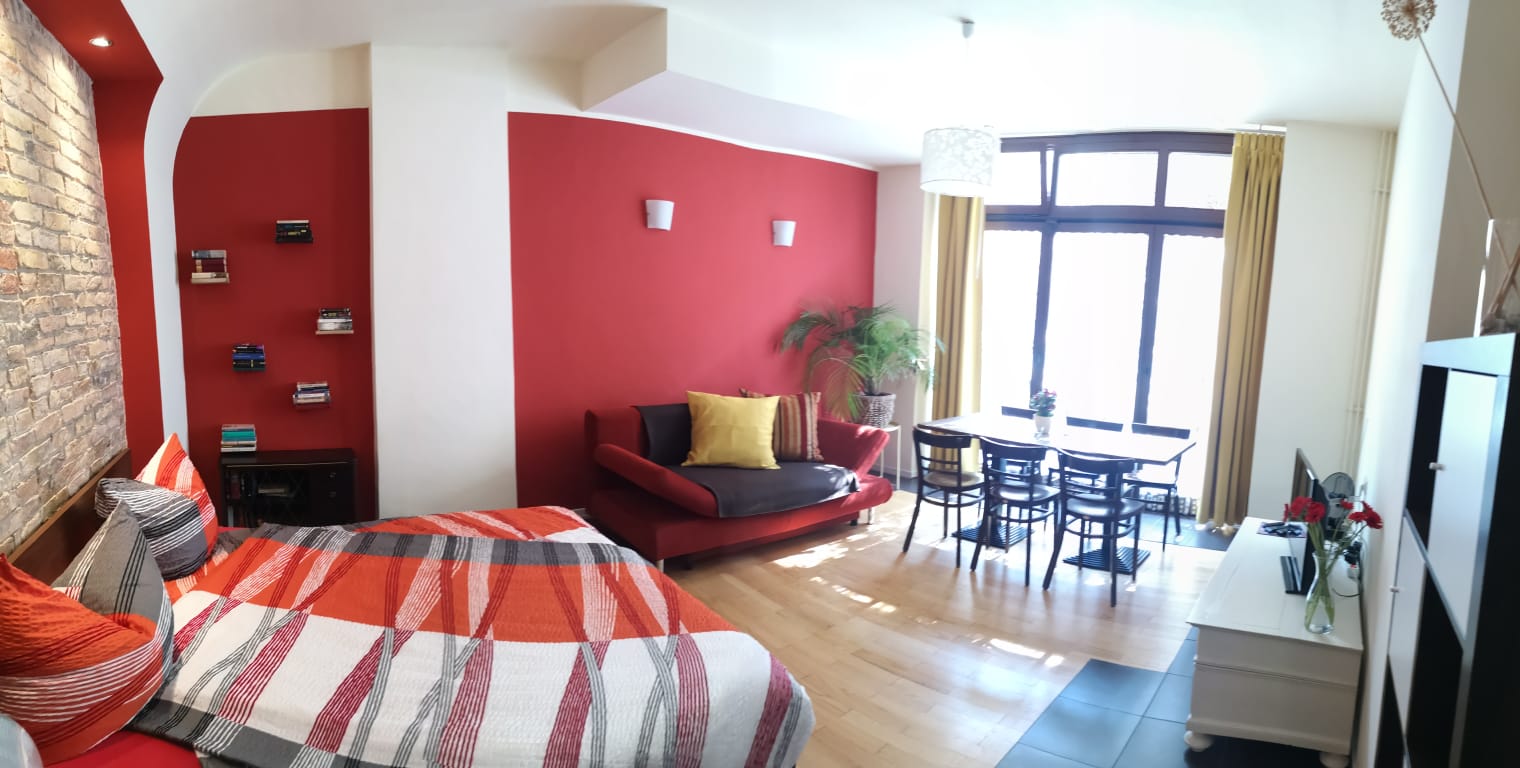 Die Ferienwohnung Benky I besteht aus einem Studio, einer Küche, einem kleinen Schlafzimmer zum Hinterhof und einem Duschbad. Im Studio befinden sich ein Doppelbett (1,60), eine Schlafcouch, ein Essbereich und ein Fernseher. Die Küche ist ausgestattet mit Kühl-/Gefrierkombi, Induktionskochfeld, Ofen, Mikrowelle und Geschirrspüler. Im kleinen Schlafzimmer steht ein Doppelbett (1,40) bereit. In dieser Wohnung können bequem 4 Personen Platz finden.